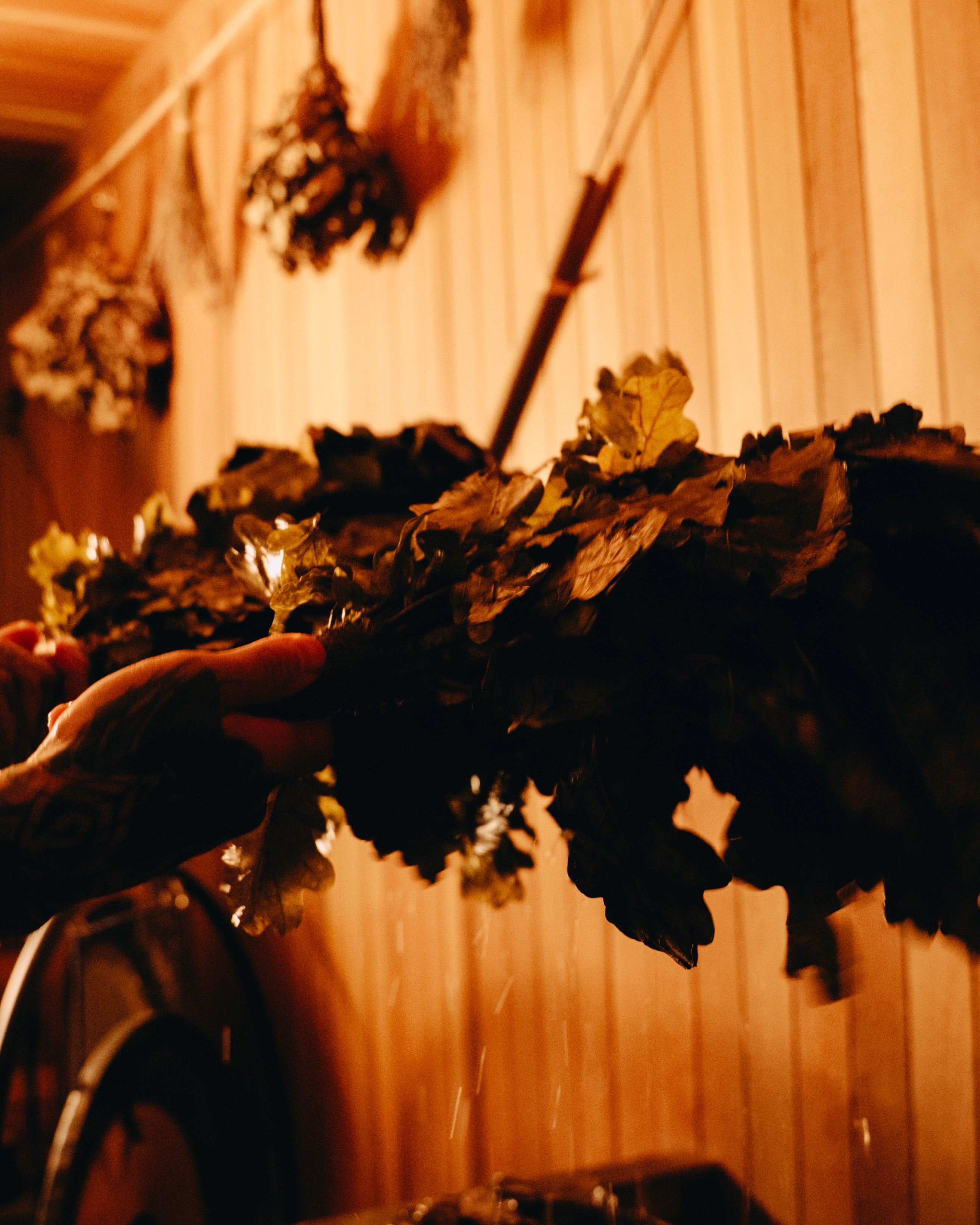 Banya is known for the venik—bundles of birch, oak, or eucalyptus branches used to massage the body during the steam session. This practice, called parenie, stimulates circulation and releases the natural oils from the leaves.